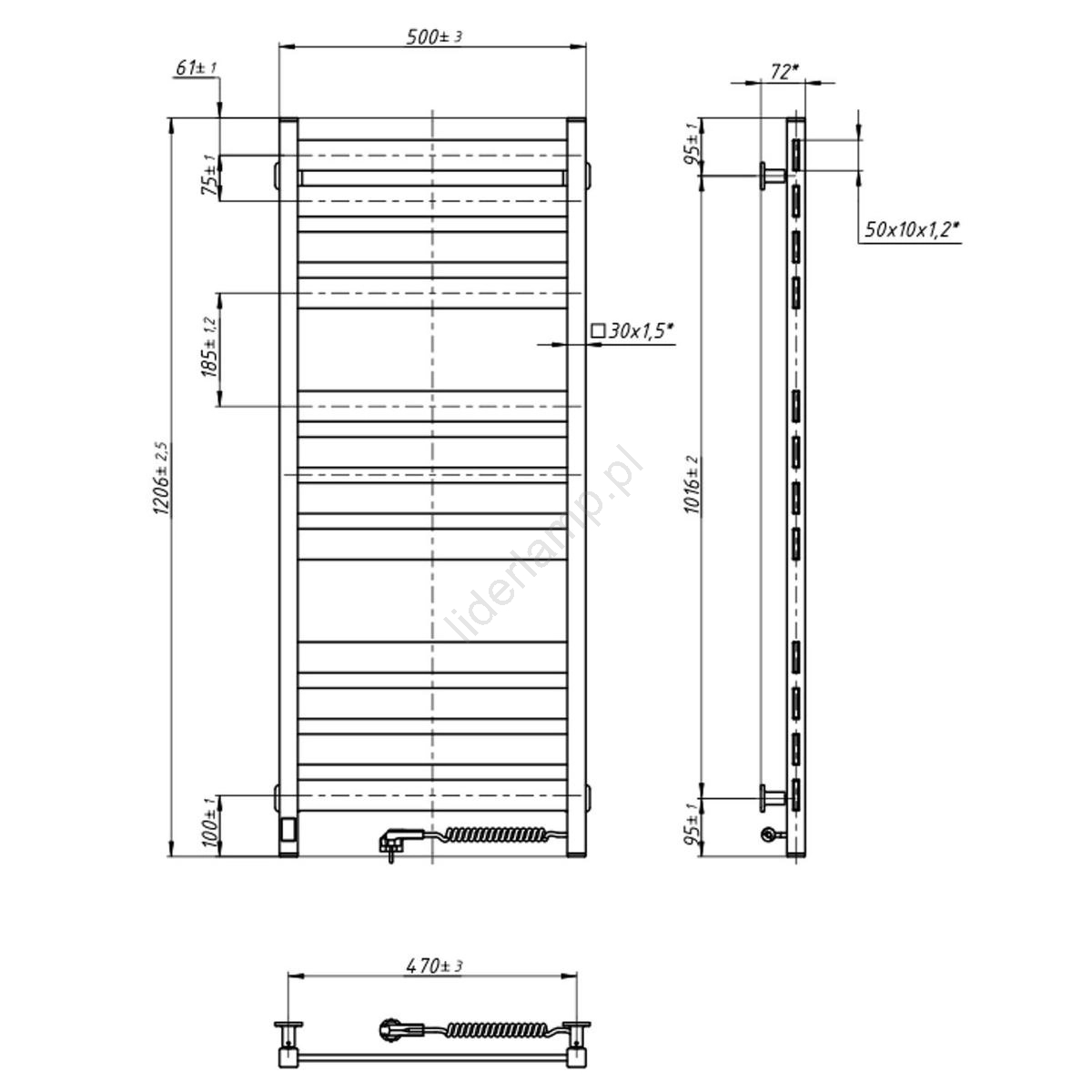 ReviewsWidget_ReviewsAboutUs Drabinkowy grzejnik łazienkowy z termostatem LARGO 256W 120x50 cm czarny prawy | Liderlamp.pl