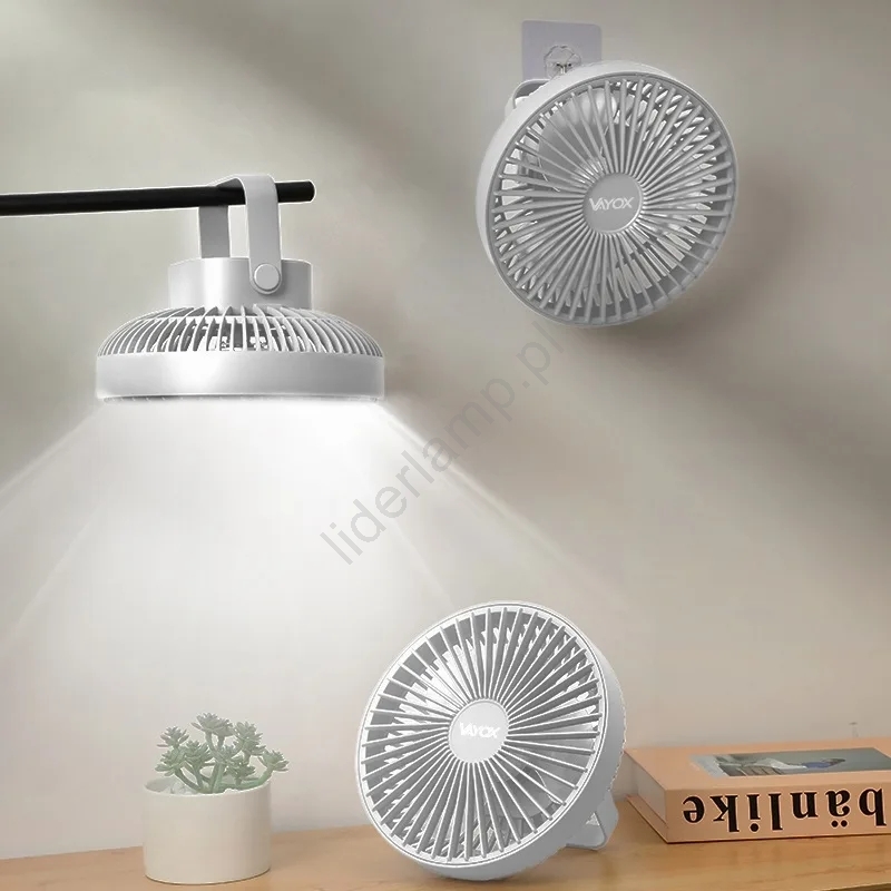 • LED Biurkowy wentylator ładowany z oświetleniem LED LED/2W/5V USB 2400 mAh biały