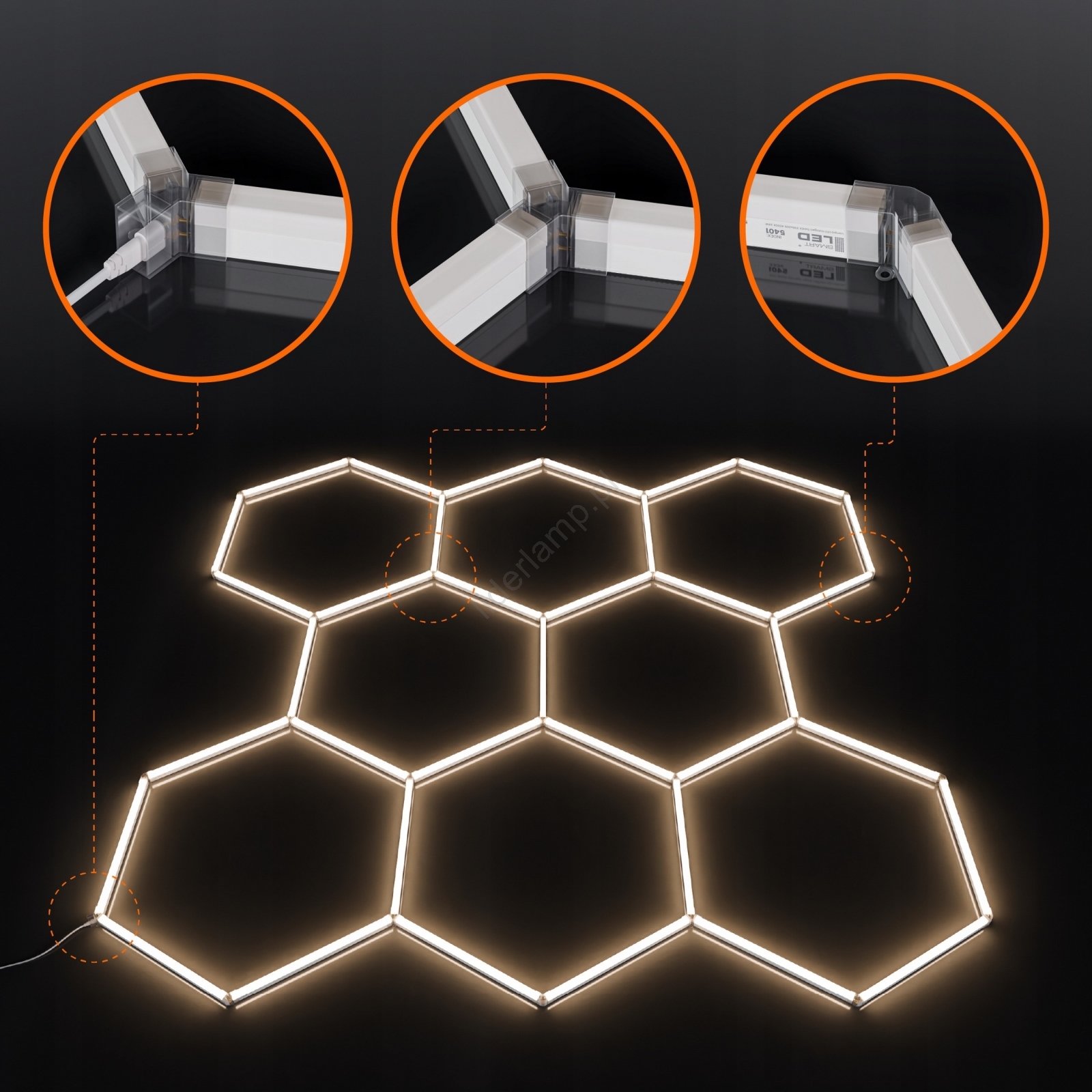 • Dzięki sześciokątnej konstrukcji oświetlenie pełni rolę zarówno elementu dekoracyjnego, jak i funkcjonalnego systemu świetlnego.