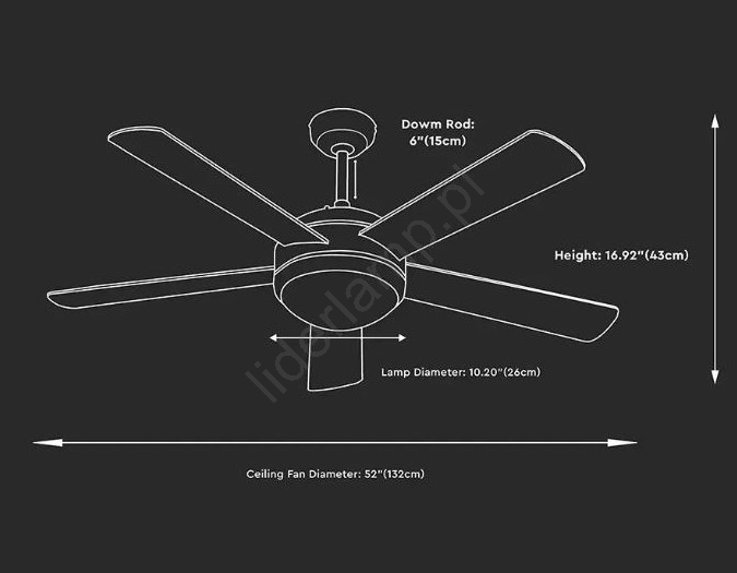 • Łopatki wentylatora są dostarczane w 2 kolorach - kolor jasnego drewna i po obróceniu łopatek kolor ciemnego drewna.