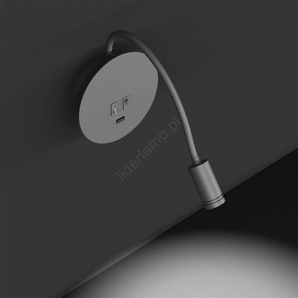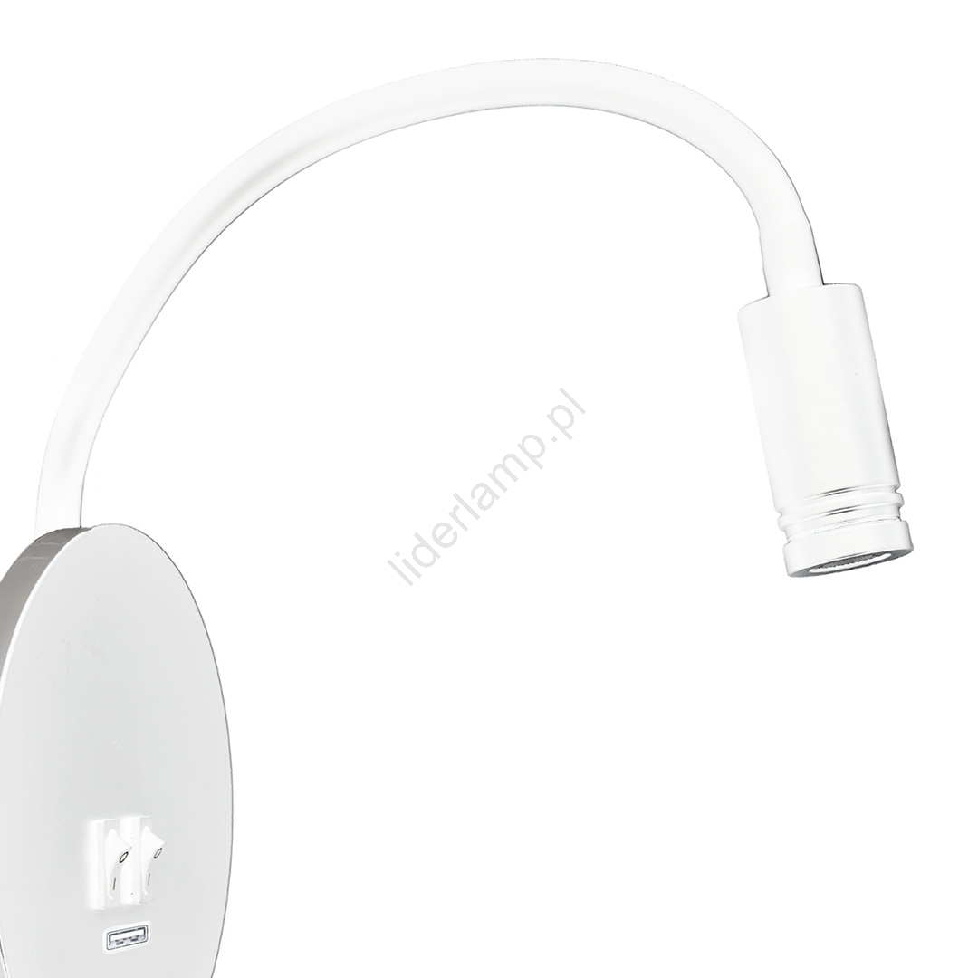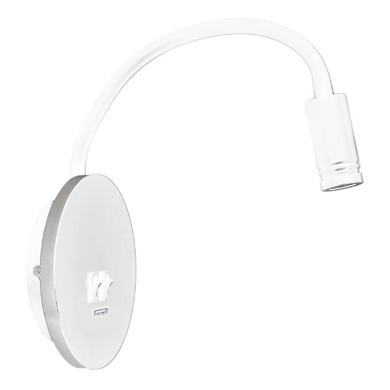 • Giętna lampka ścienna LED z portem USB BASE LED/8W + LED/2W/230V biała