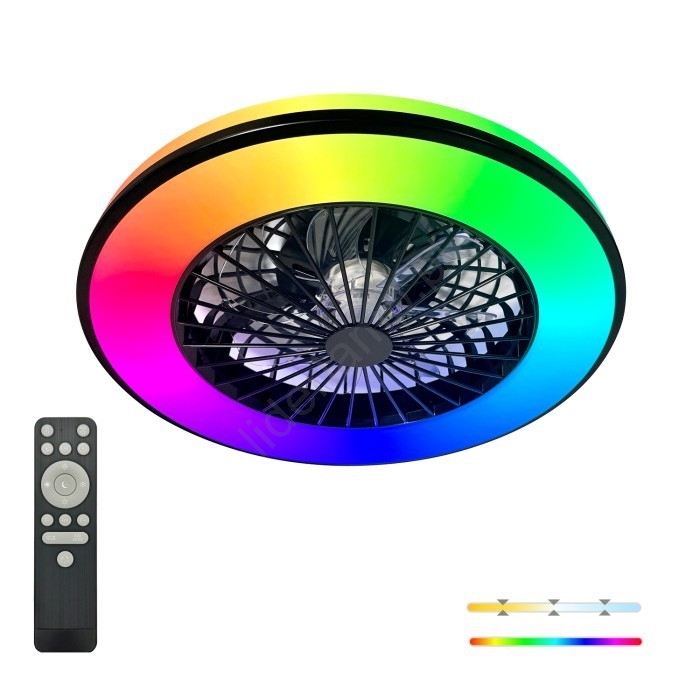 • LED RGBW ściemnialna oprawa sufitowa z wentylatorem VENTELUX LED/48W/230V 3000/4000/6500K śr. 48,5 cm czarna + pilot zdalnego sterowania