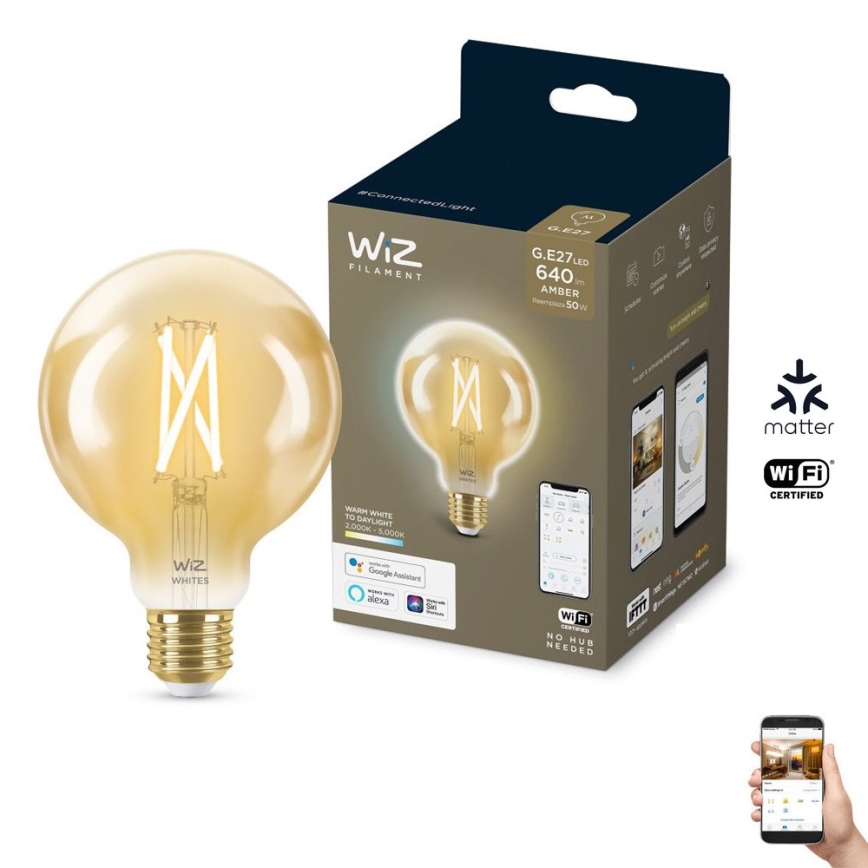 LED Ściemnialna żarówka VINTAGE FILAMENT G95 E27/6,7W/230V 2000-5000K CRI 90 Wi-Fi - WiZ
