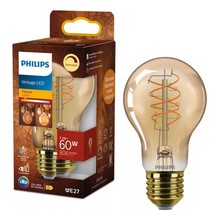 • LED ściemnialna żarówka VINTAGE Philips A60 E27/7,3W/230V 2200K