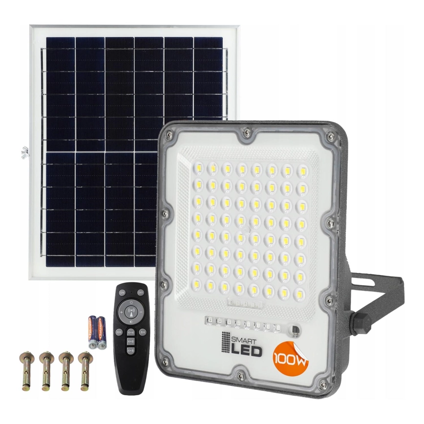 Ściemnialny solarny reflektor LED/100W/3,2V 5000K 10500 mAh IP65 czarny + zdalne sterowanie
