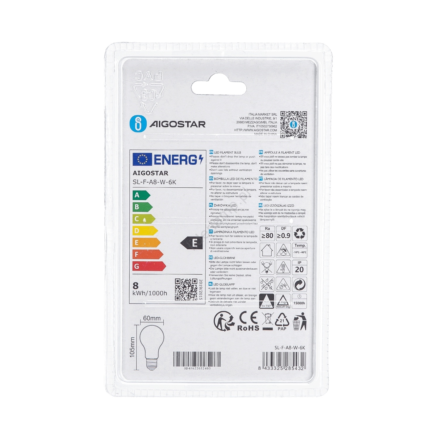 • LED Żarówka A60 E27/8W/230V 6500K - Aigostar