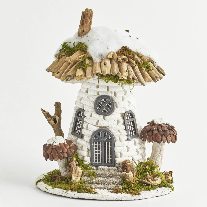 • Dekoracyjny oświetlony domek w białym kolorze z diodami LED.