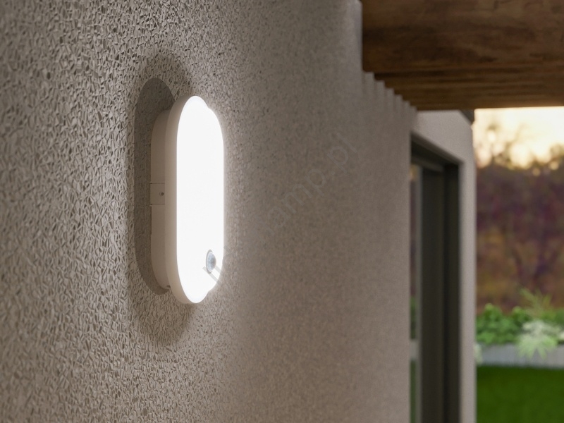 LED Zewnętrzny kinkiet z czujnikiem ruchu i zmierzchu OVAL LED/10W/230V IP65 biały