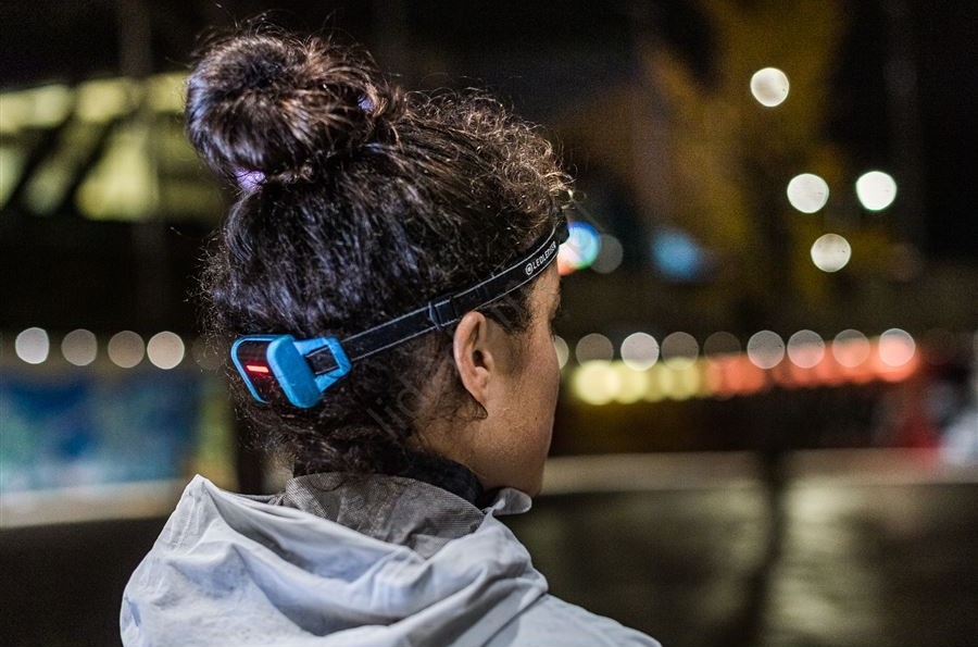 • Czołówkę można również przymocować do pasa na klatkę piersiową, co zapobiega oślepianiu biegaczy lub pieszych idących z naprzeciwka.