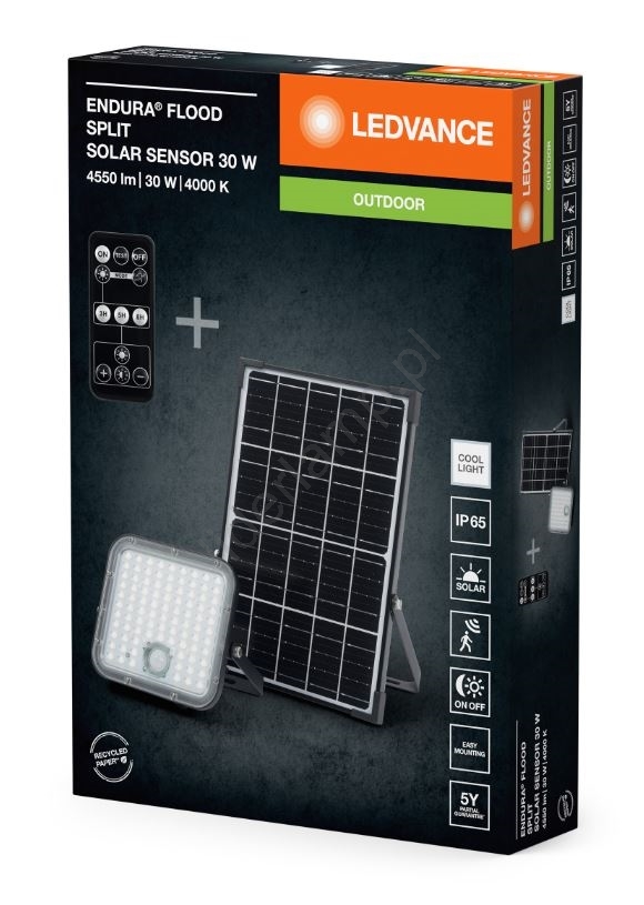 Ledvance - LED regulowany reflektor solarny z czujnikiem FLOOD SPLIT LED/30W/6,4V 5000 mAh IP65 + pilot zdalnego sterowania