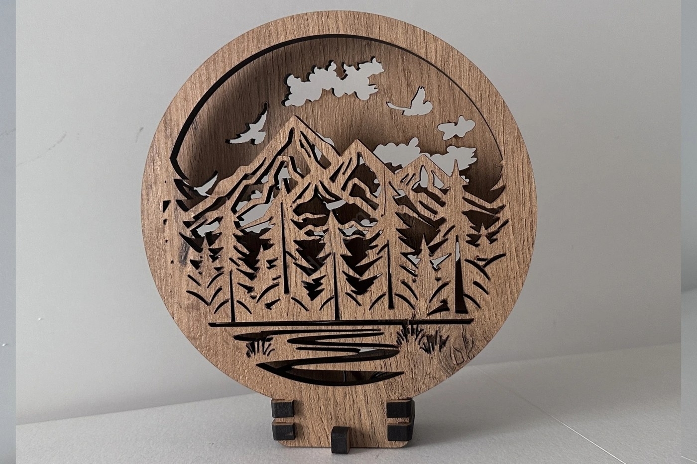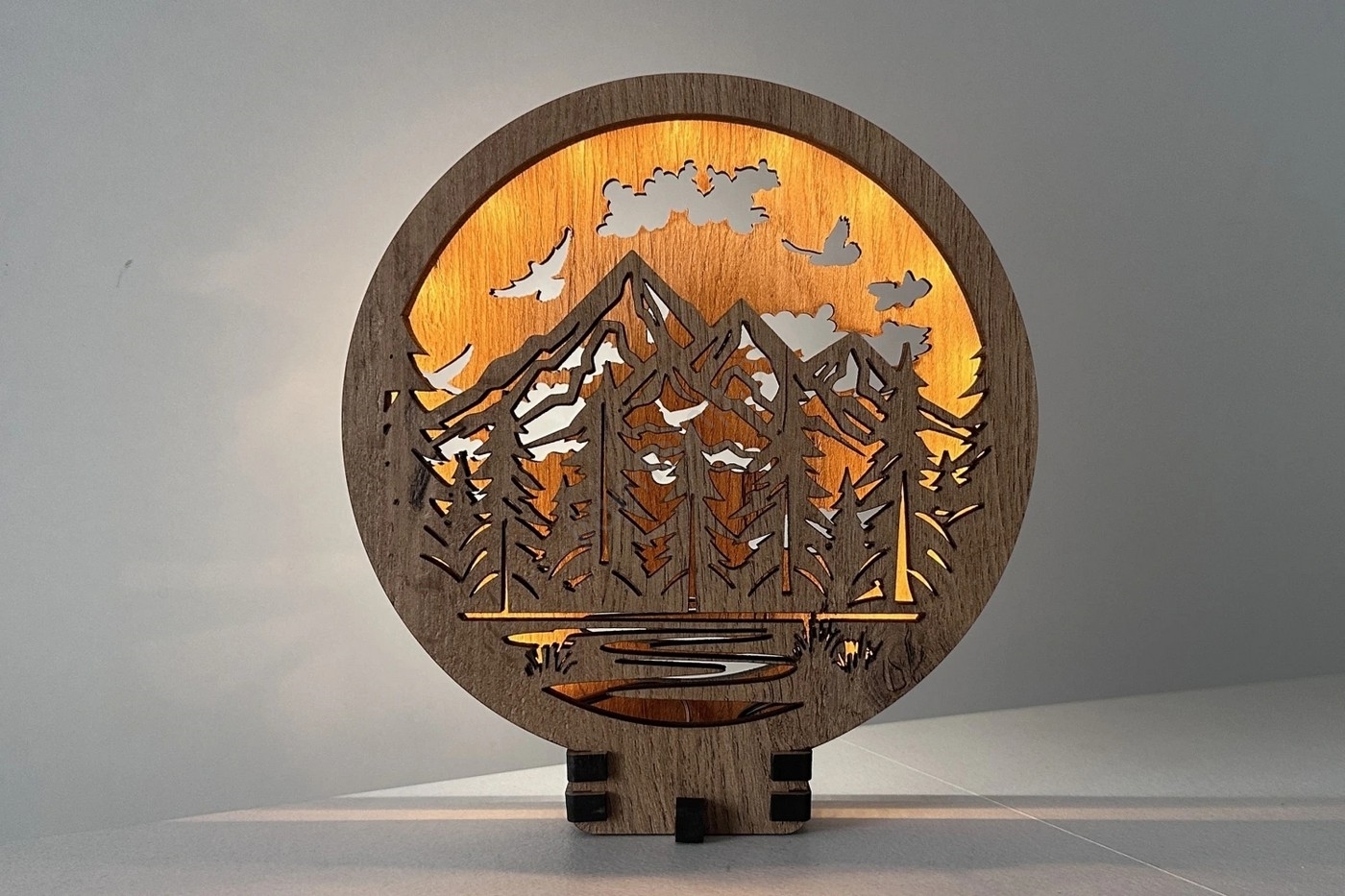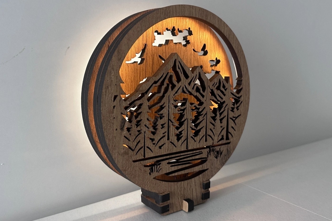 Li-Go 23583/DUB2 - LED Ściemnialna dekoracyjna lampa stołowa LED/12W/230V 20x22 cm dąb/Góry i las