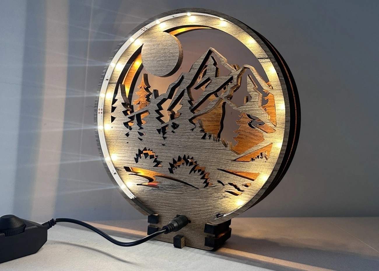 Li-Go 23592/DUB2 - ściemnialna dekoracja stołowa LED/12W/230V 20x22 cm dąb/Jeleń i łania