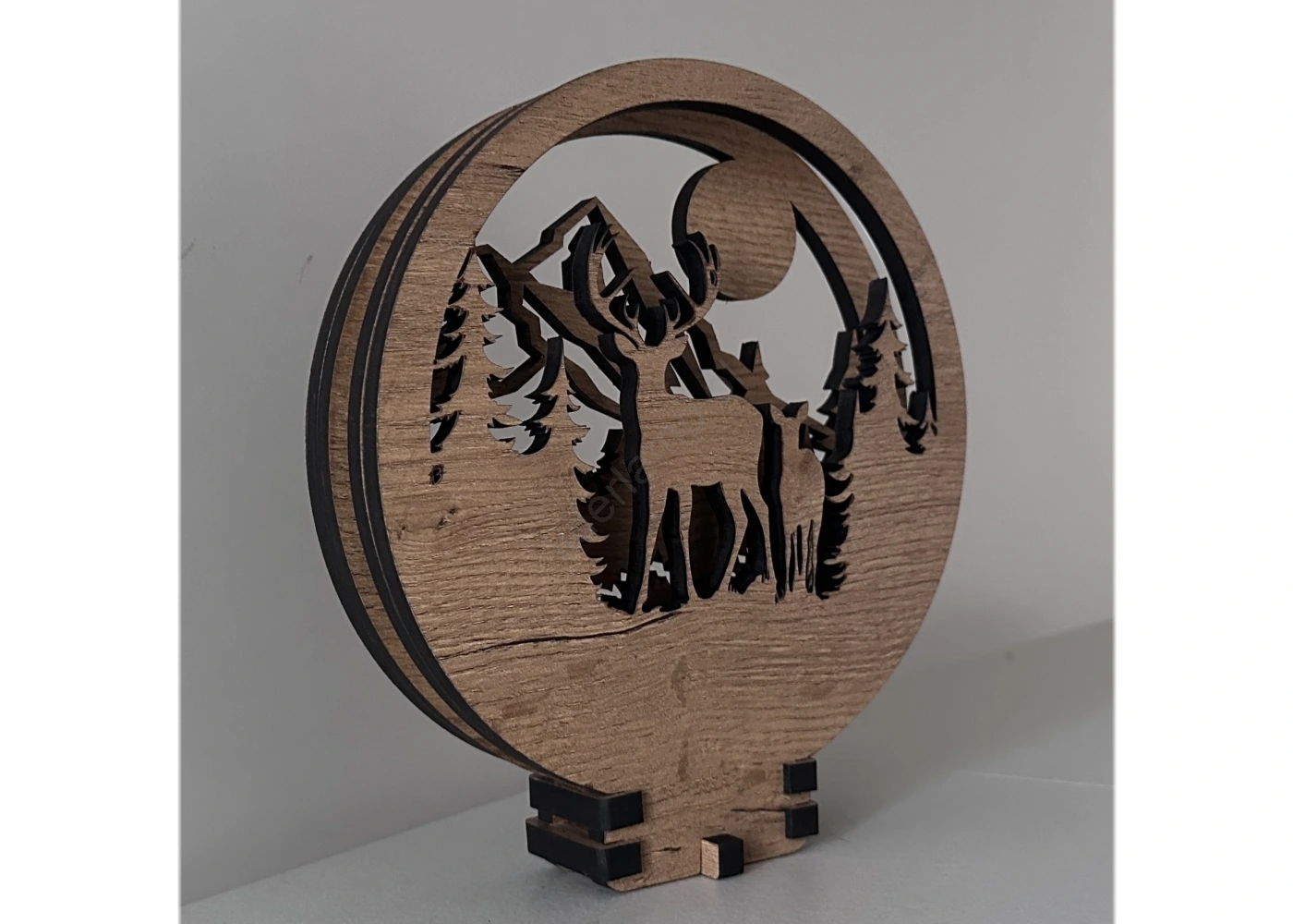 Li-Go 23592/DUB2 - LED ściemnialna dekoracja stołowa LED/12W/230V 20x22 cm dąb/Jeleń i łania