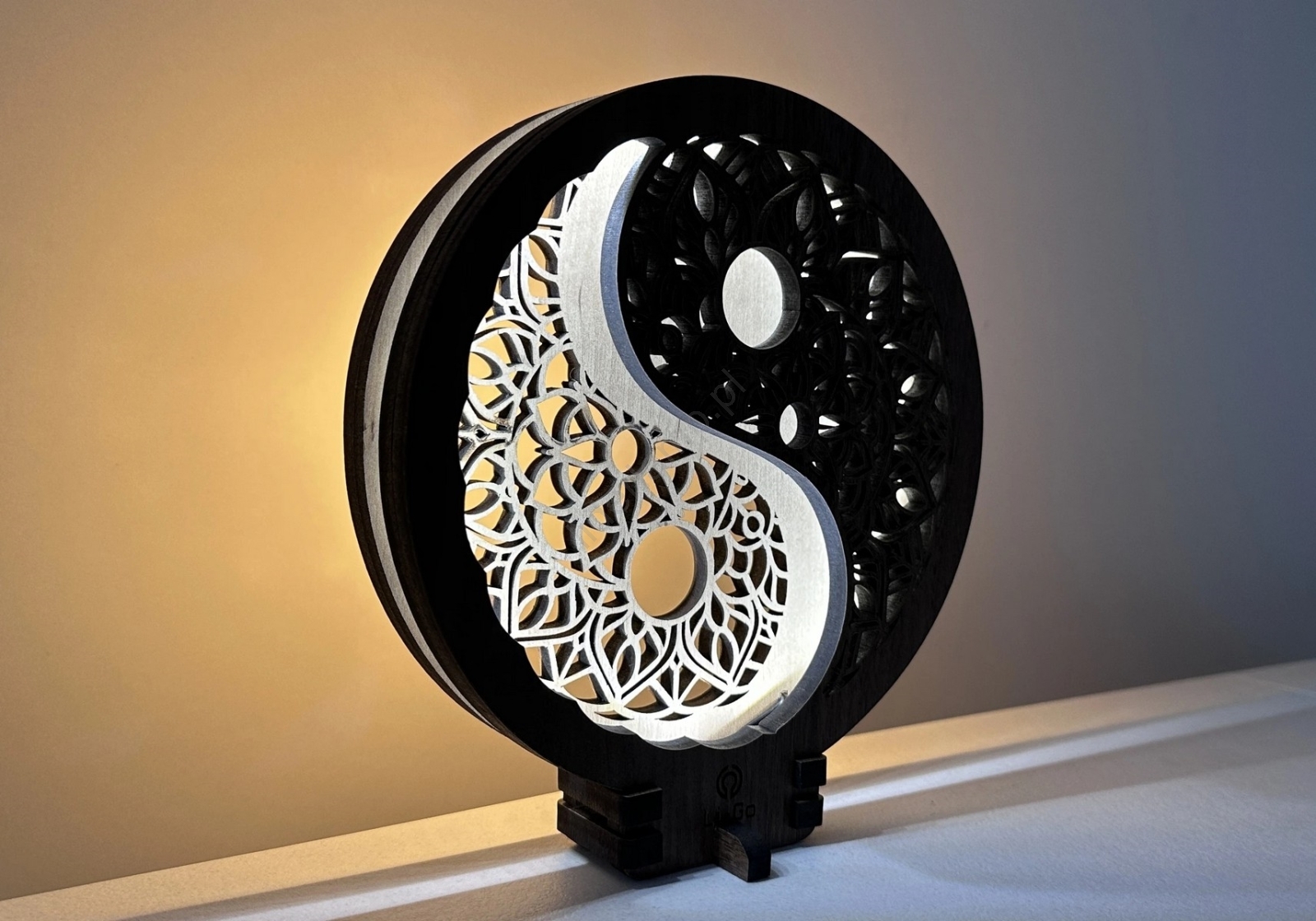 Li-Go 23607/O - Ściemnialna dekoracyjna lampa stołowa LED/12W/230V 20x22 cm orzech/Yin Yang