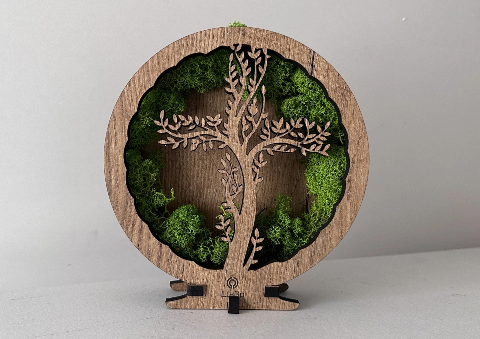 Li-Go 23622/DUB2 - Ściemnialna dekoracja stołowa LED/12W/230V 20x22 cm dąb/Krzyż w mchu