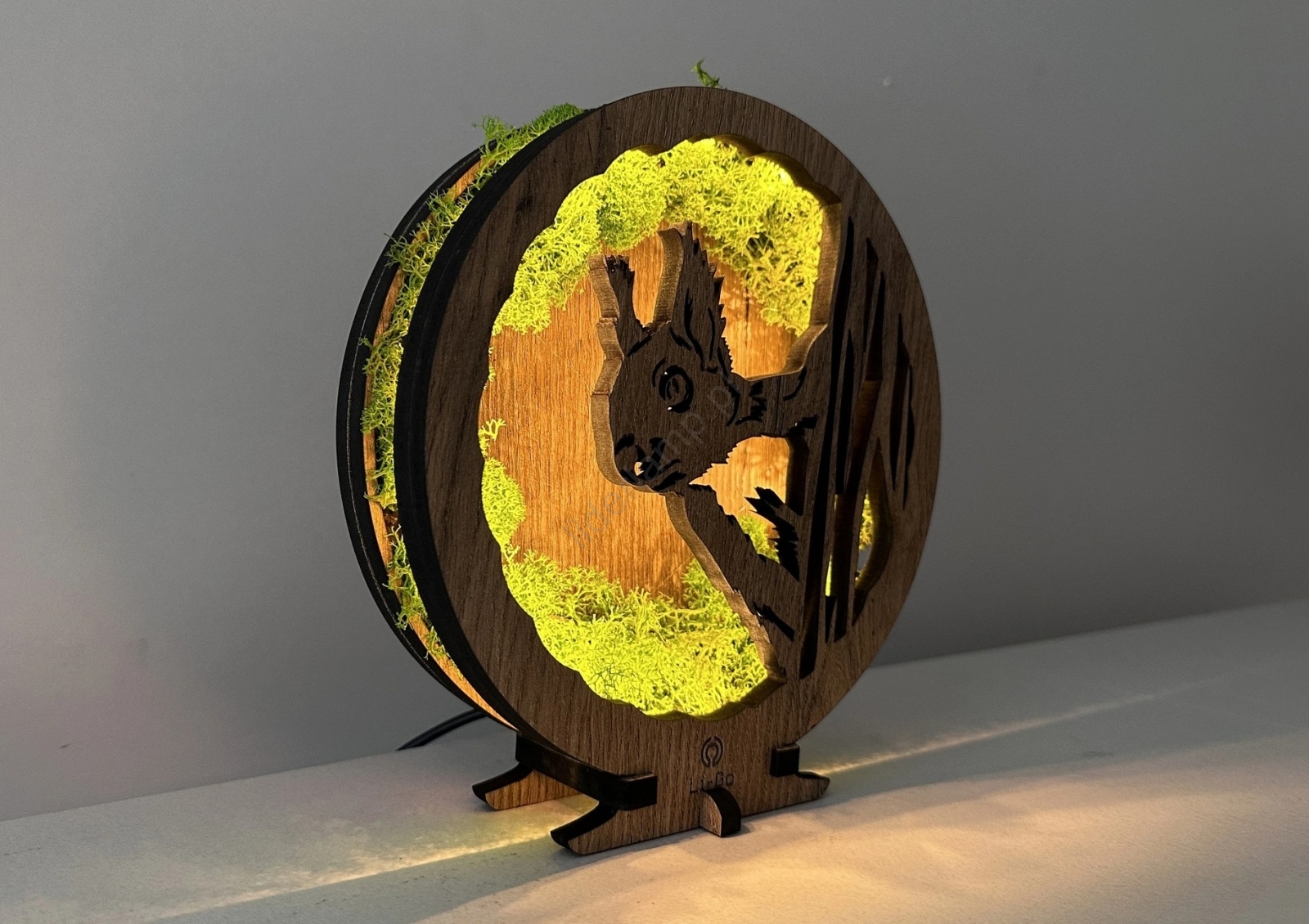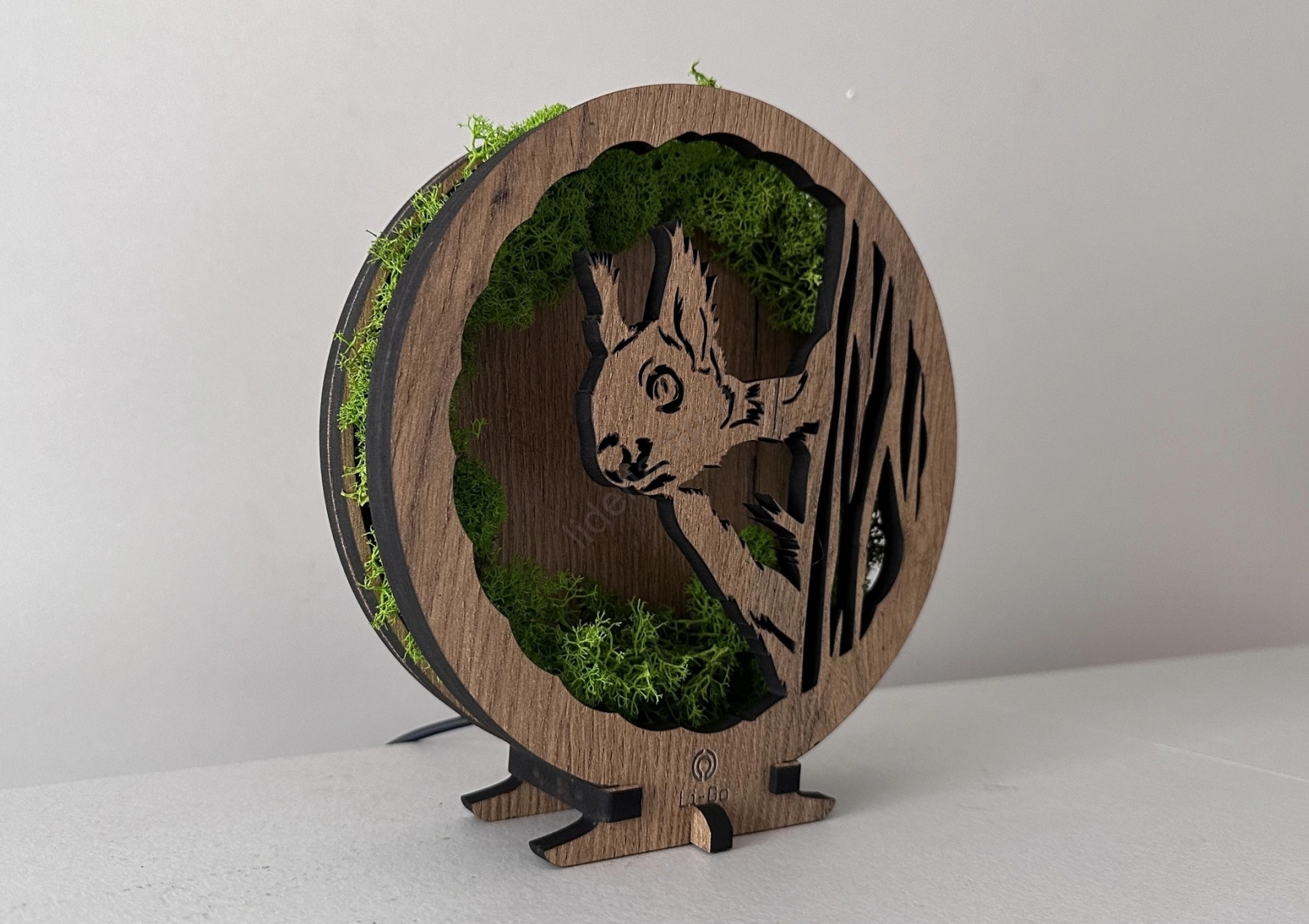Li-Go 23625/DUB2 - Ściemnialna dekoracja stołowa LED LED/12W/230V 20x22 cm dąb/mechowa wiewiórka