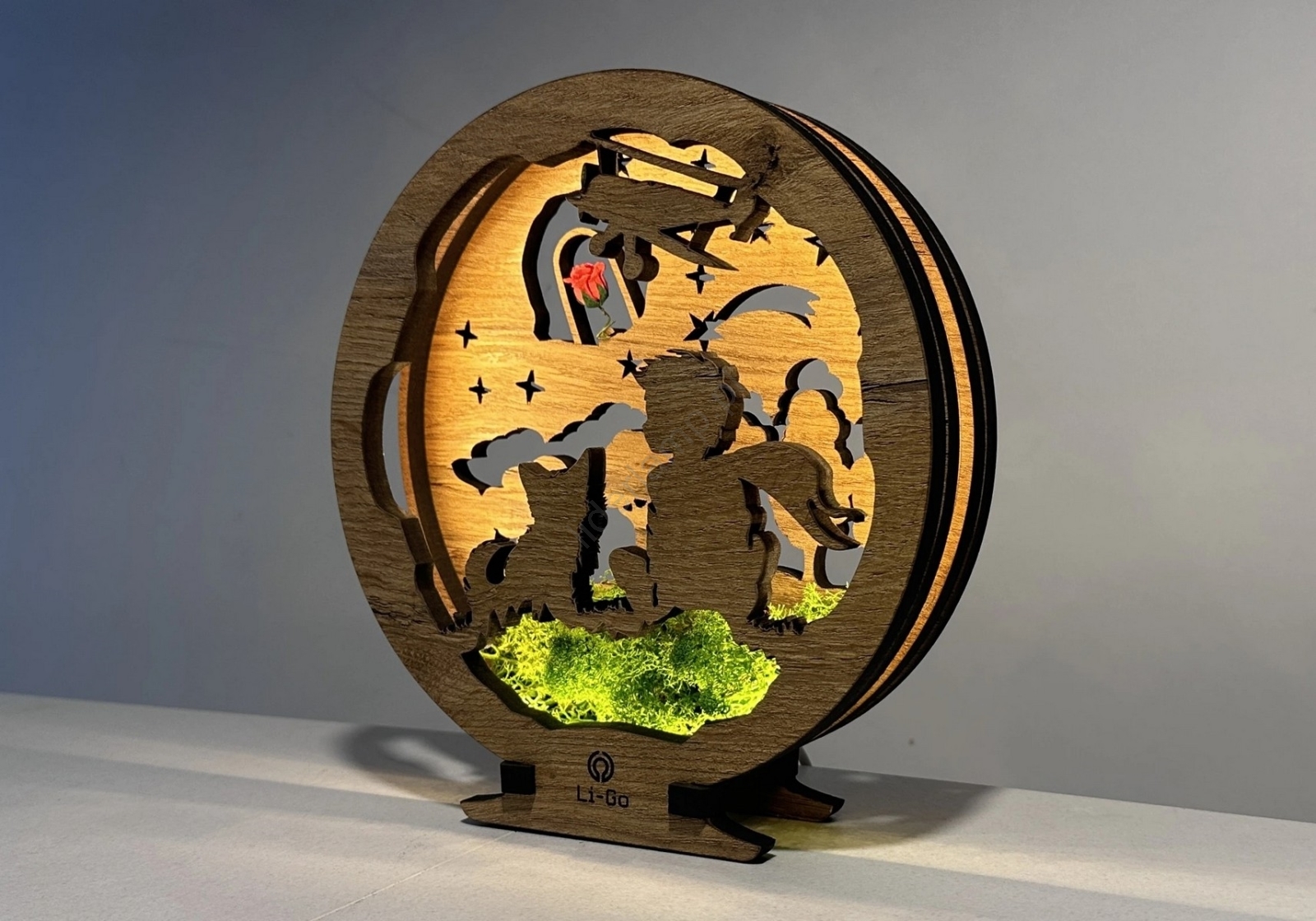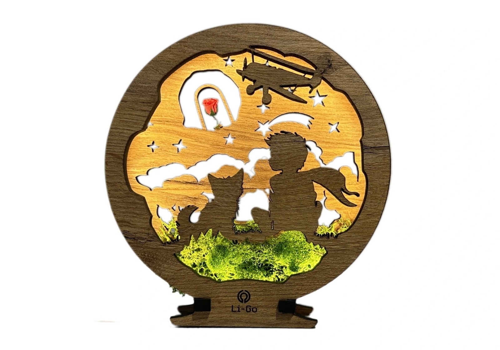 Li-Go 23634/DUB2 - LED ściemnialna dekoracja stołowa LED/12W/230V 20x22 cm dąb/Mały Książę z różą