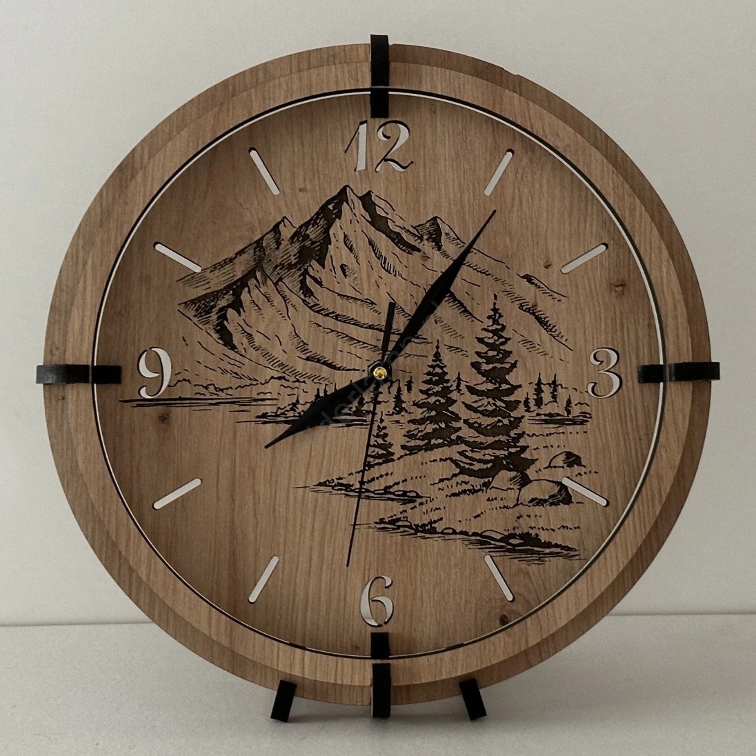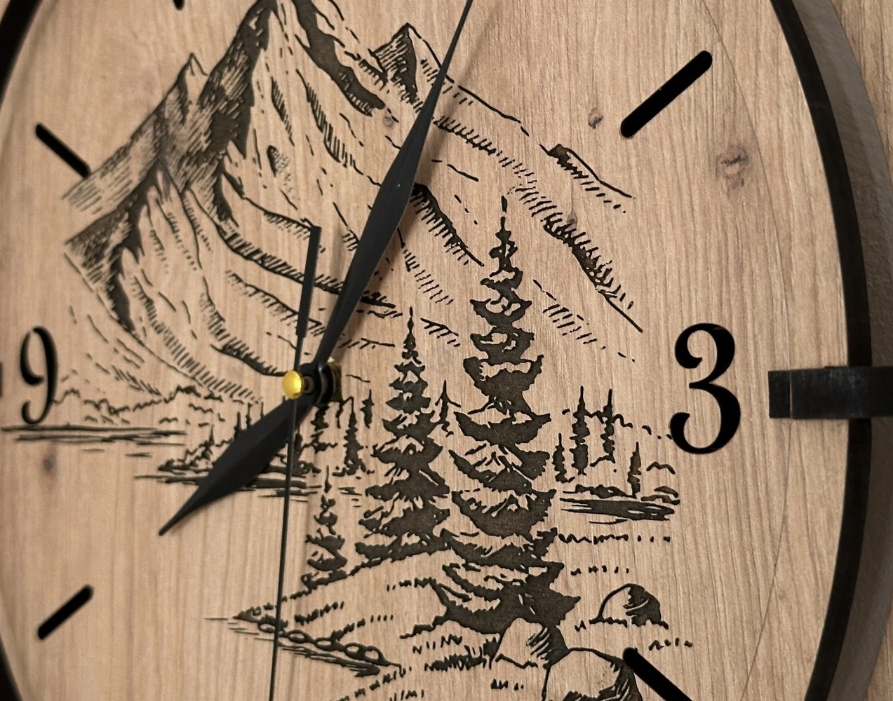 • Drewniany zegar z unikatowym, precyzyjnie wygrawerowanym motywem.