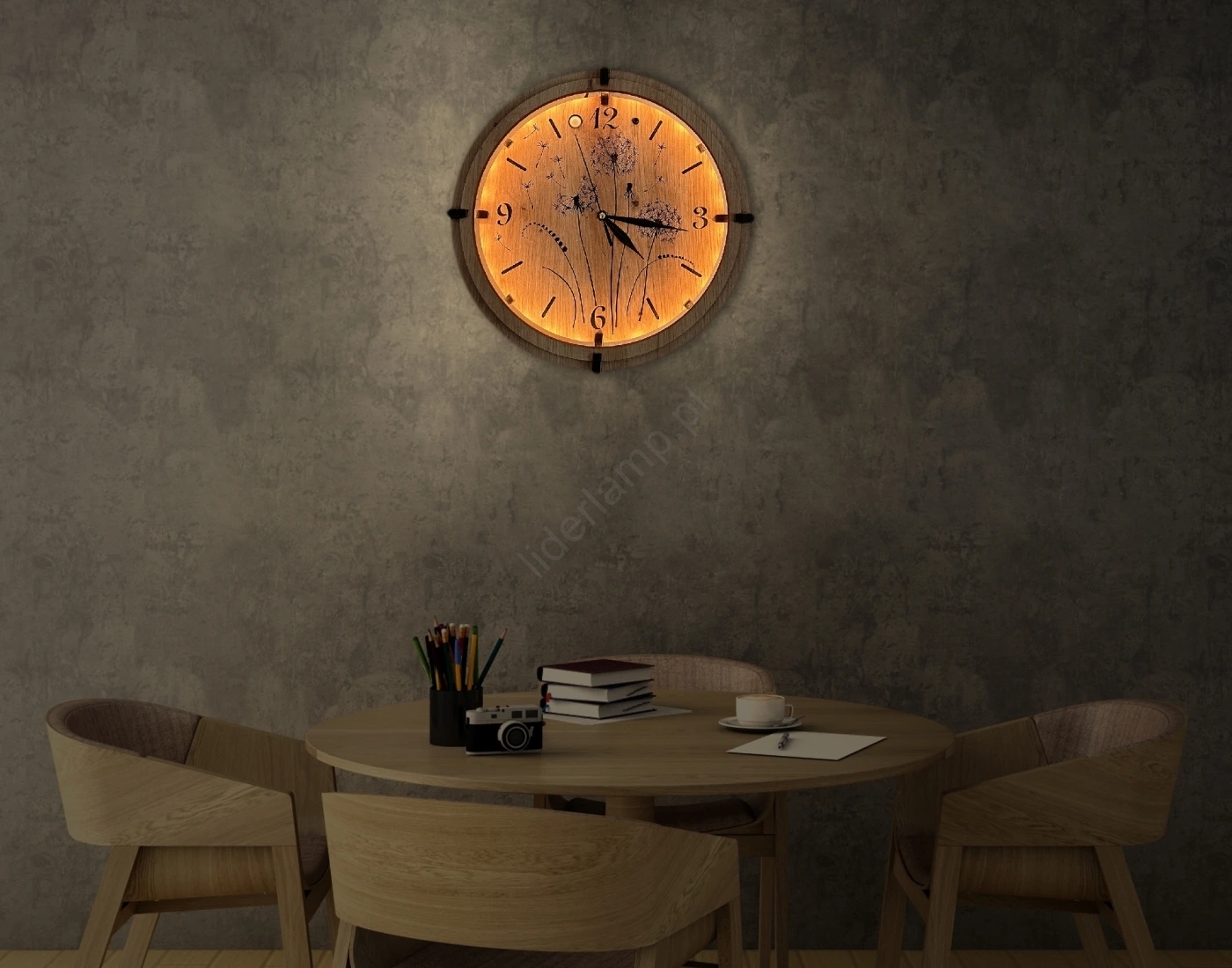 • Idealne dekoracyjne oświetlenie, uzupełnione funkcjonalnym zegarem.