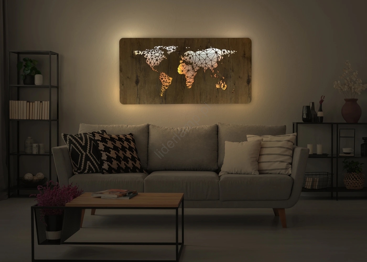 Li-Go 4457/A/4 - Ściemnialna dekoracja ścienna LED/10W/5V 30000 mAh 120x60 cm dąb/Mapa świata