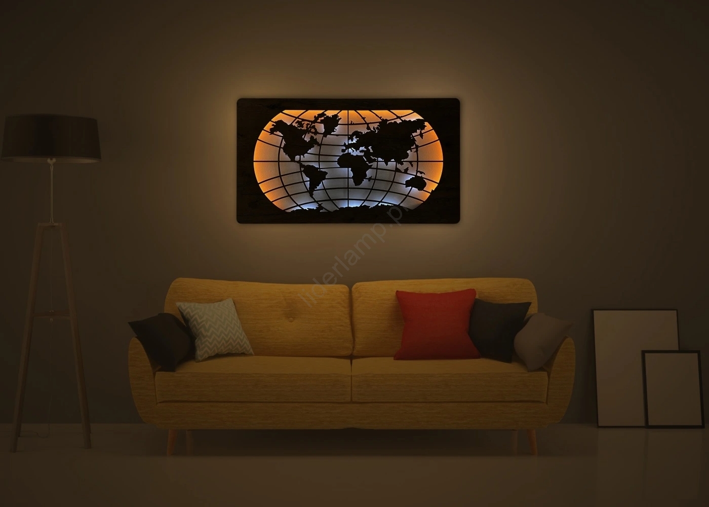 • Oświetlenie LED z motywem mapy świata.