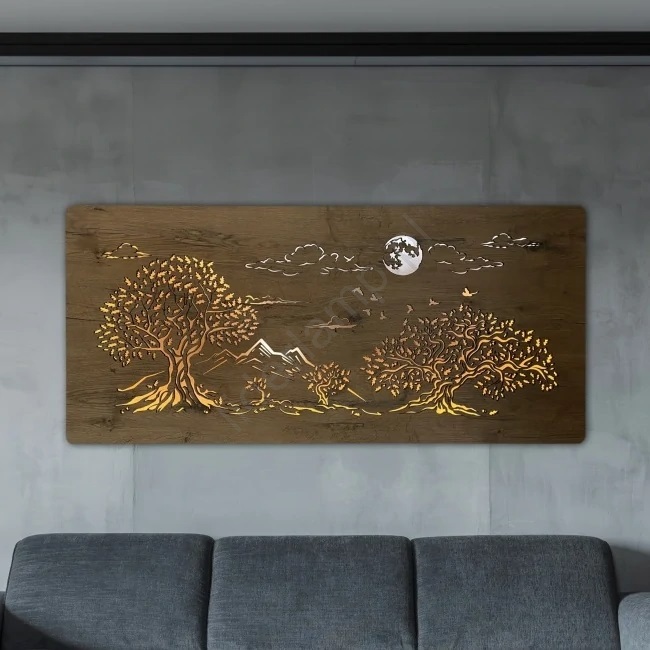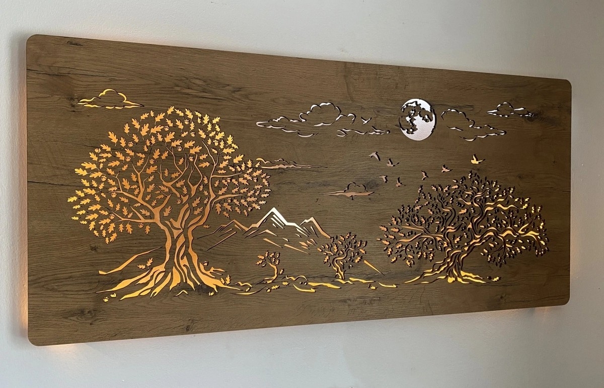 Li-Go 5478/DUB2 - LED ściemnialna dekoracja ścienna LED/24W/230V 130x60 cm dąb/Cztery dęby i księżyc