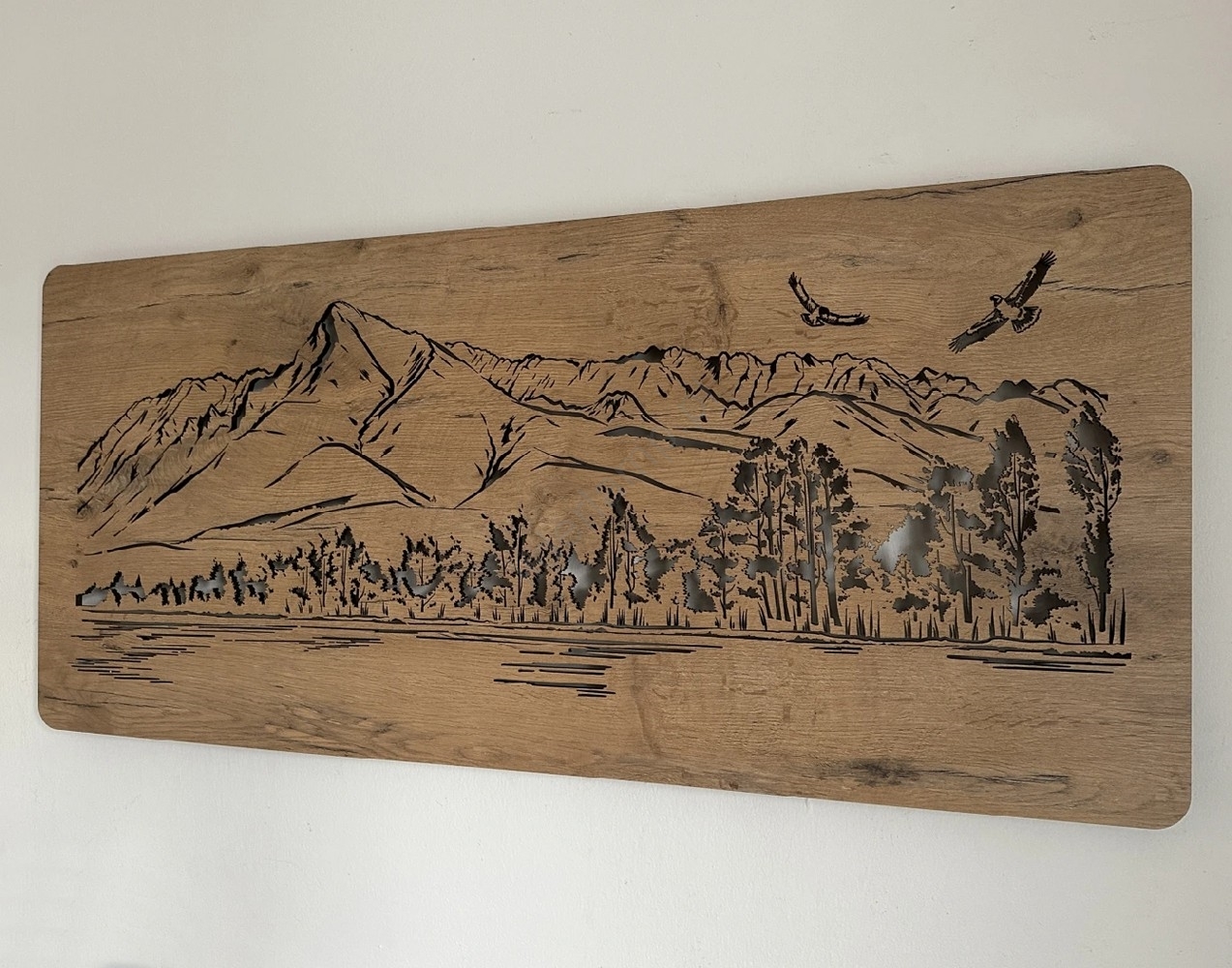 Li-Go 5589/A/DUB2 - LED ściemnialna dekoracja ścienna LED/10W/5V 30000 mAh 110x50 cm dąb/góry z ptakami