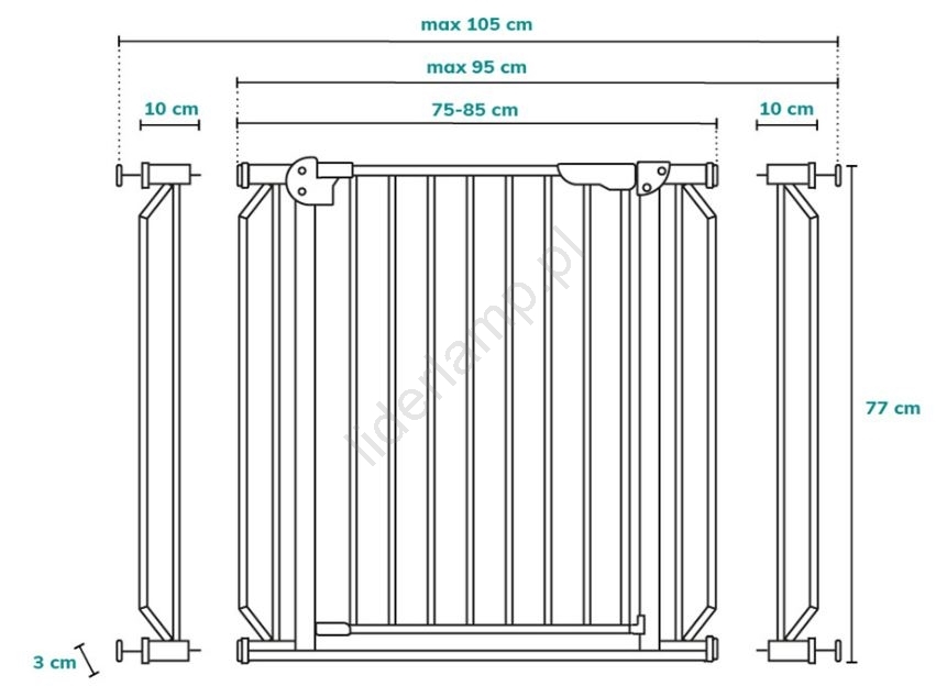 • Szybki i prosty montaż w przejściu o szerokości 75 - 100 cm.