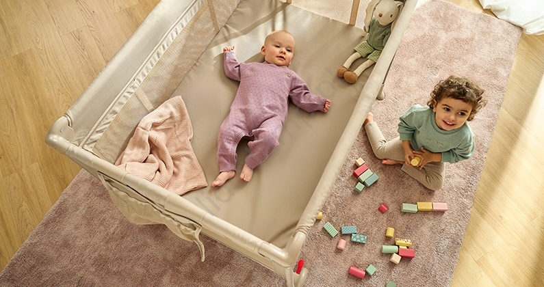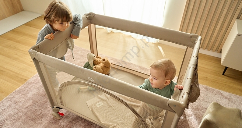 • Składane łóżeczko turystyczne, które można także wykorzystać jako kojec.