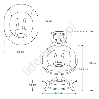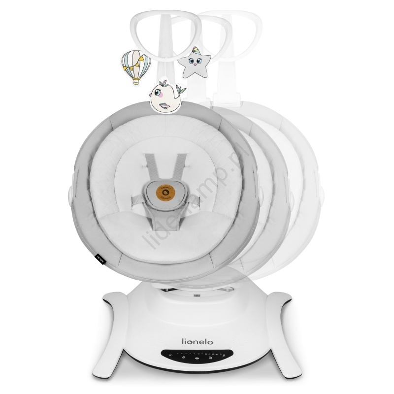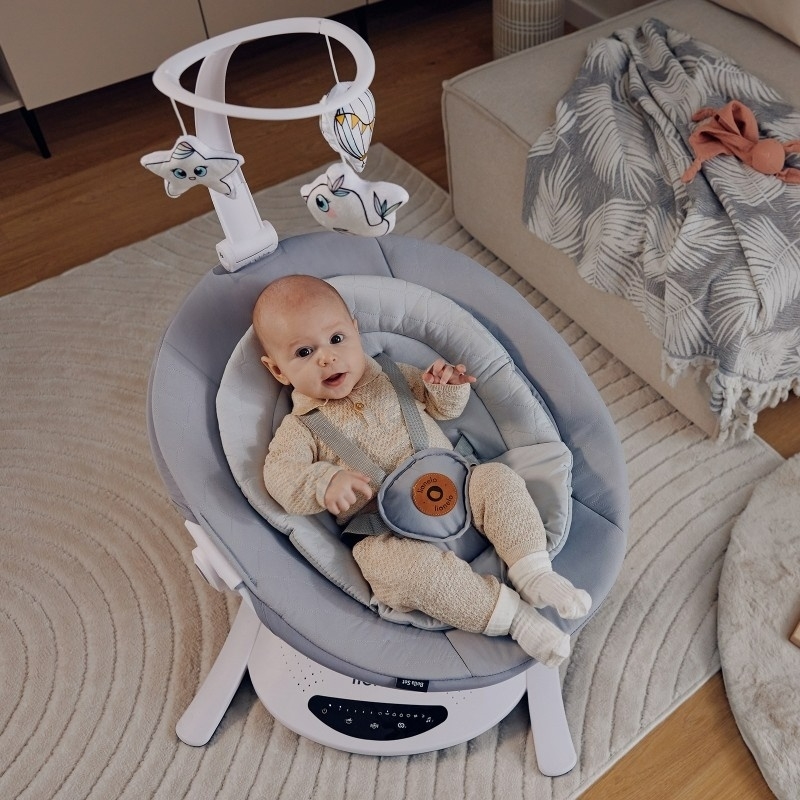 • Ruch z boku na bok oraz przód–tył, 5 prędkości kołysania + 1 tryb automatyczny, który zmienia się co 16 sekund.