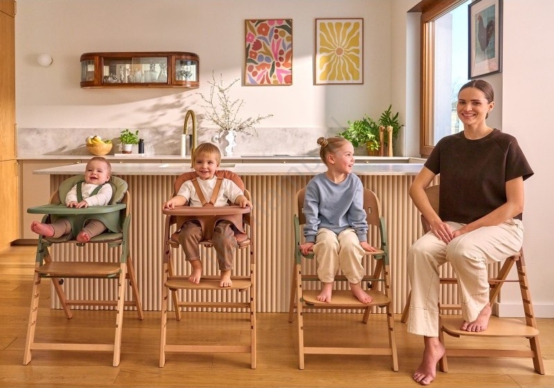 • Służy jako wysokie krzesełko dla niemowląt (z BabySetem i tacą, do 15 kg), jako wygodne siedzisko dla przedszkolaków oraz jako pełnoprawne krzesło dla starszych dzieci, a nawet dorosłych (nośność do 110 kg).