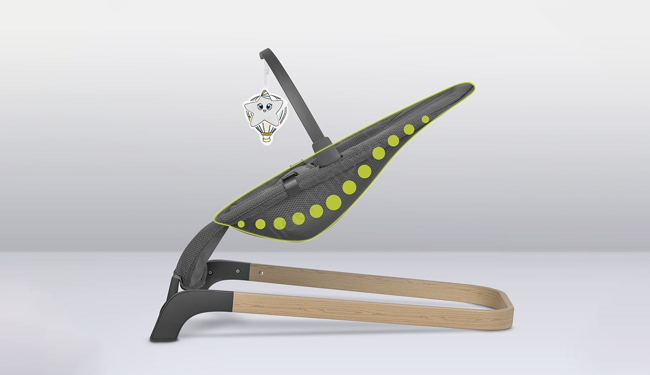 • Leżaczek bujany porusza się wskutek naturalnych ruchów dziecka, co wspiera rozwój motoryki i równowagi.
