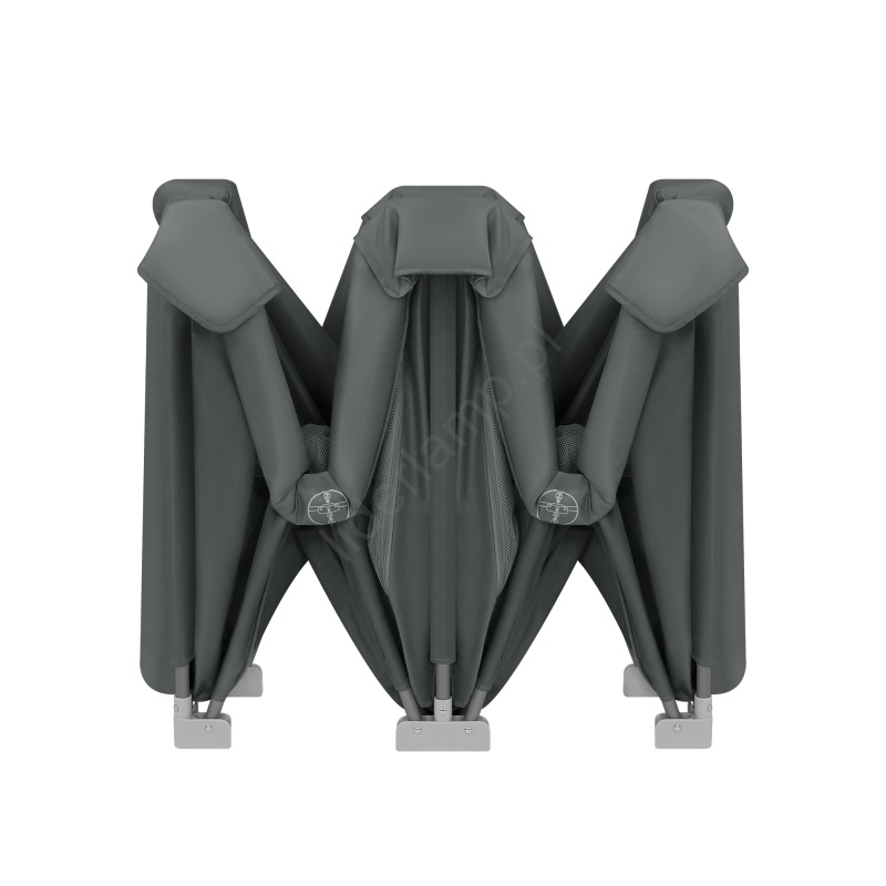 • Kojec wyposażony jest w prosty mechanizm składania, który pozwala szybko złożyć go do kompaktowych rozmiarów bez użycia narzędzi.