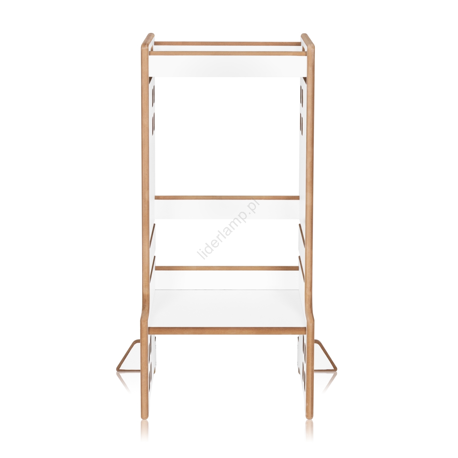 • Wieża składa się z podestu, na którym stoi dziecko, stopnia ułatwiającego wejście oraz barierki otaczającej konstrukcję.