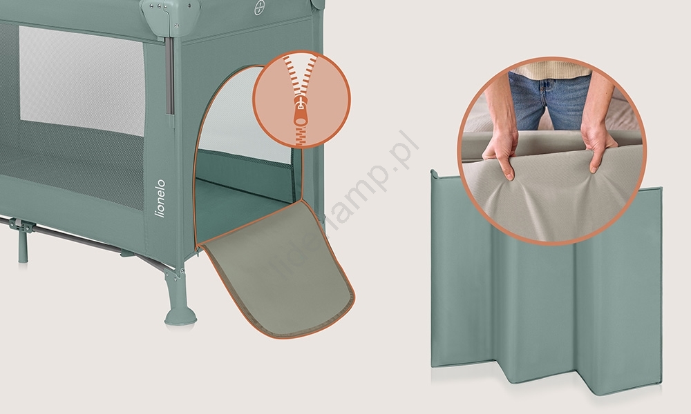 • Składane łóżeczko turystyczne, które można również używać jako kojec.