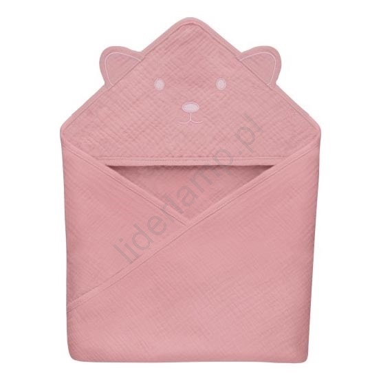 Lionelo - Muślinowy ręcznik kąpielowy z kapturem Pink Baby