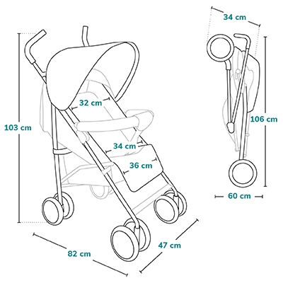 • Łatwe złożenie do kompaktowych rozmiarów oszczędza miejsce, gdy wózek nie jest używany.