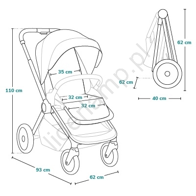 • Zestaw zawiera moskitierę, folię przeciwdeszczową, pokrowiec na nóżki i pasek do przenoszenia.