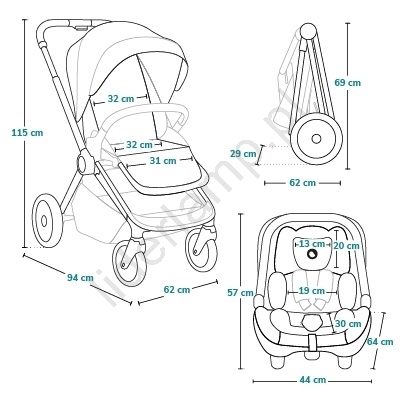 • Przestronna gondola, składana, regulowana wysokość za pomocą adapterów, pokrowiec otwierany z obu stron.