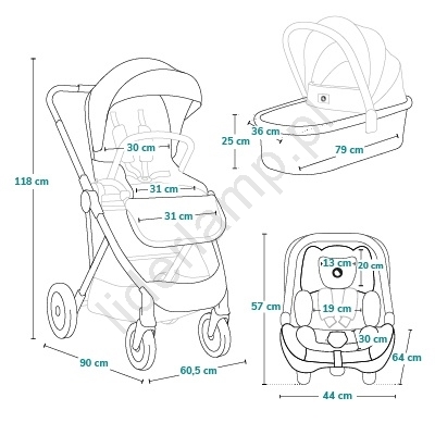 • Zawiera akcesoria: moskitiera, folia przeciwdeszczowa, pokrowce, torba, mata do przewijania.