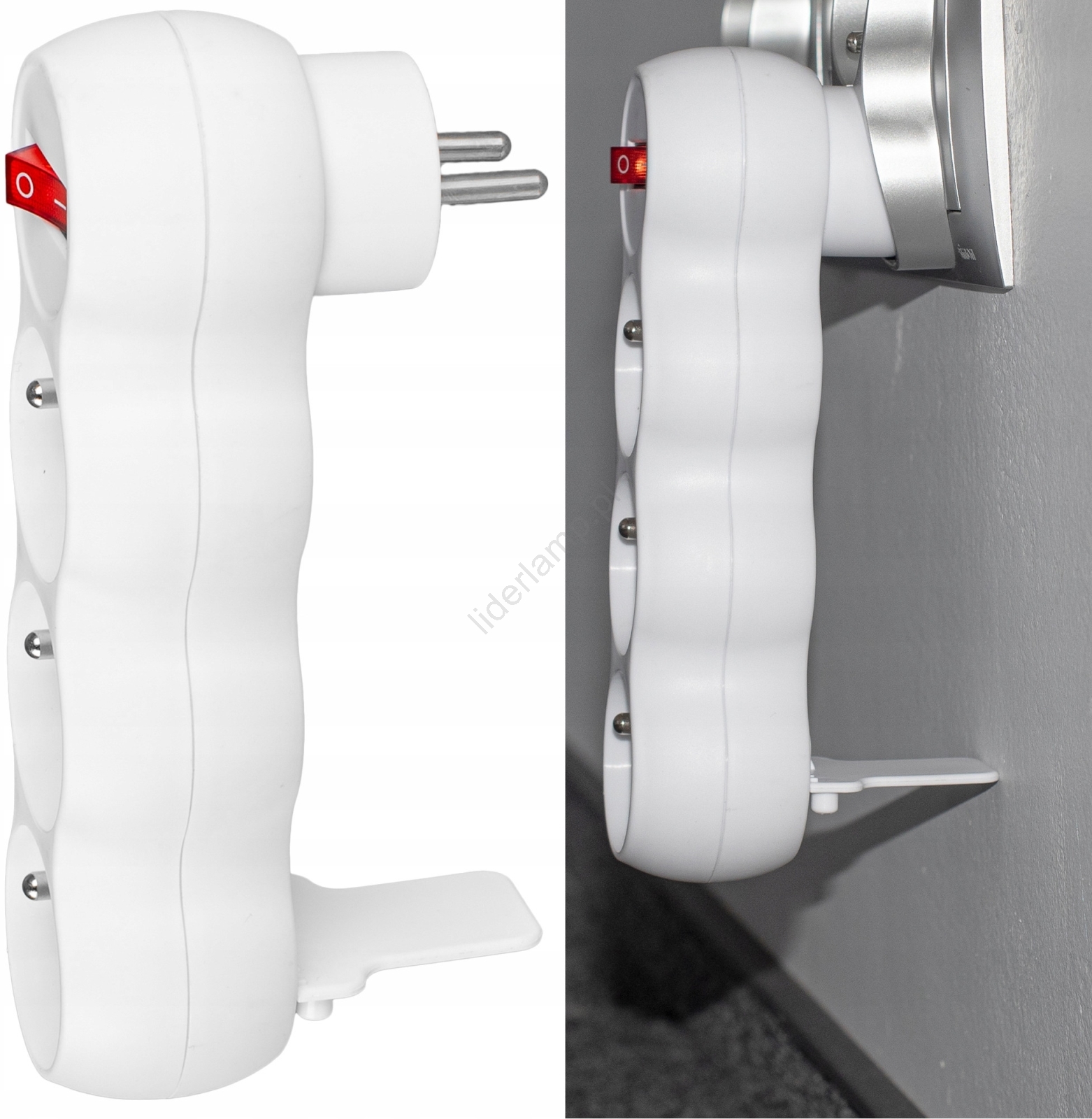 • Listwa zasilająca z trzema uziemionymi gniazdami i wydłużoną obudową z podstawą.