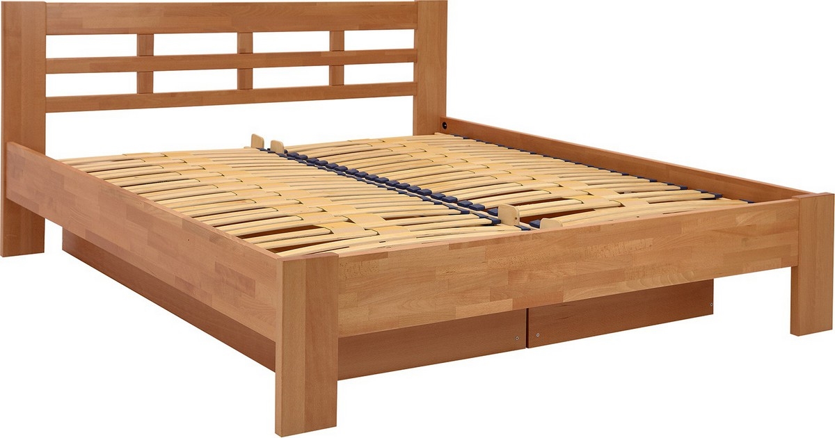 • Podwójne łóżko z litego drewna z miejscem do przechowywania ANGELA 180x200 cm buk