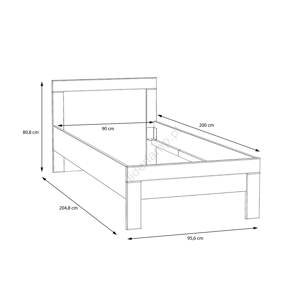 • Łóżko wymaga materaca 90x200 cm.