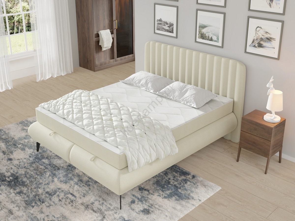 Tapicerowane łóżko ALEXA 180x200 cm z materacami i pojemnikiem na pościel, beżowe