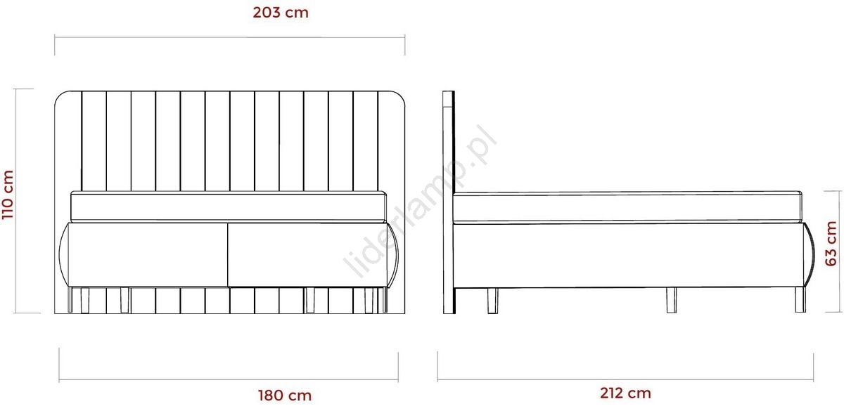 • Wysokie wezgłowie z pionowym pikowaniem dodaje łóżku wyrafinowanego akcentu, zapewnia dyskretne, lecz wygodne podparcie pleców.