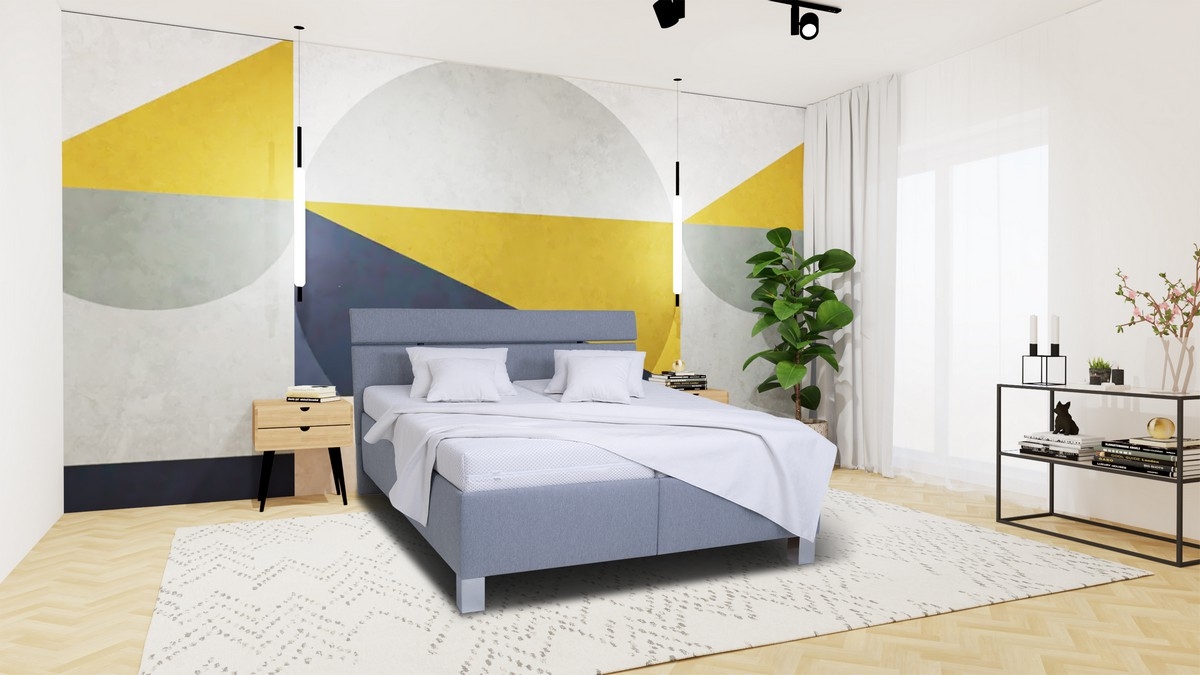 • Tapicerowane łóżko dwuosobowe z luźno ułożonymi materacami, oferuje maksymalny komfort i praktyczne rozwiązania dla doskonałego odpoczynku.