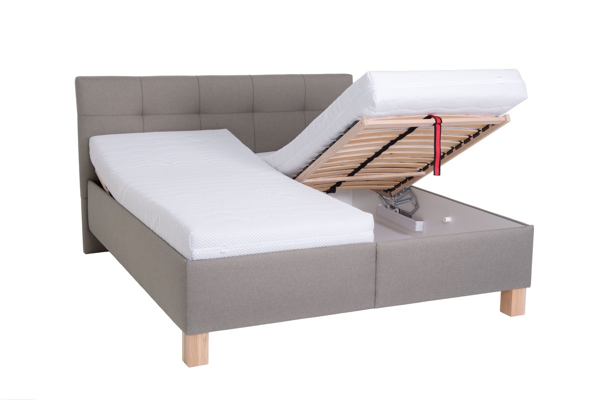 • Tapicerowane łóżko z materacem i pojemnikiem na pościel MARIA 160x200 cm szare