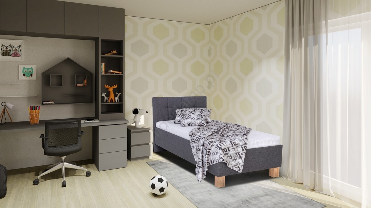• Tapicerowane łóżko z materacem i pojemnikiem na pościel MARIA ONE 90x200 cm, antracyt