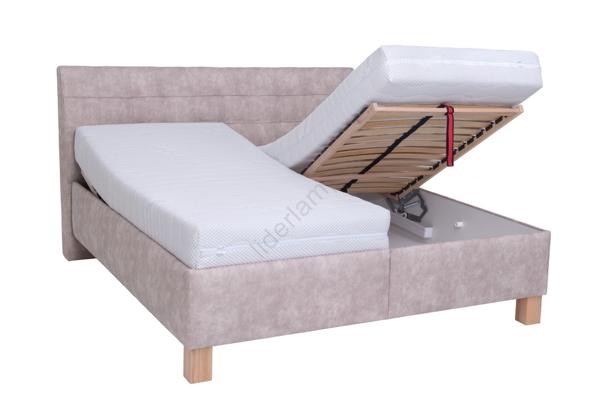 • Tapicerowane łóżko z materacem i pojemnikiem na pościel VIOLET 180x200 cm, beżowe