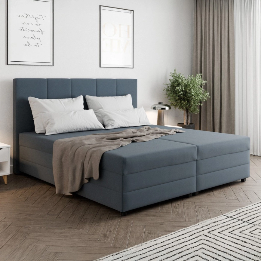 Łóżko tapicerowane z materacem sprężynowym i pojemnikiem na pościel ISABEL 180x200 szare